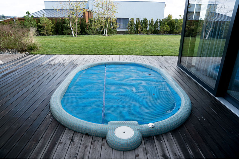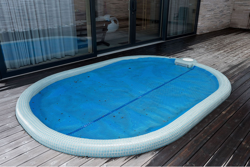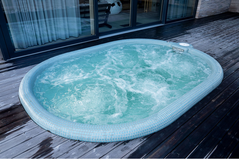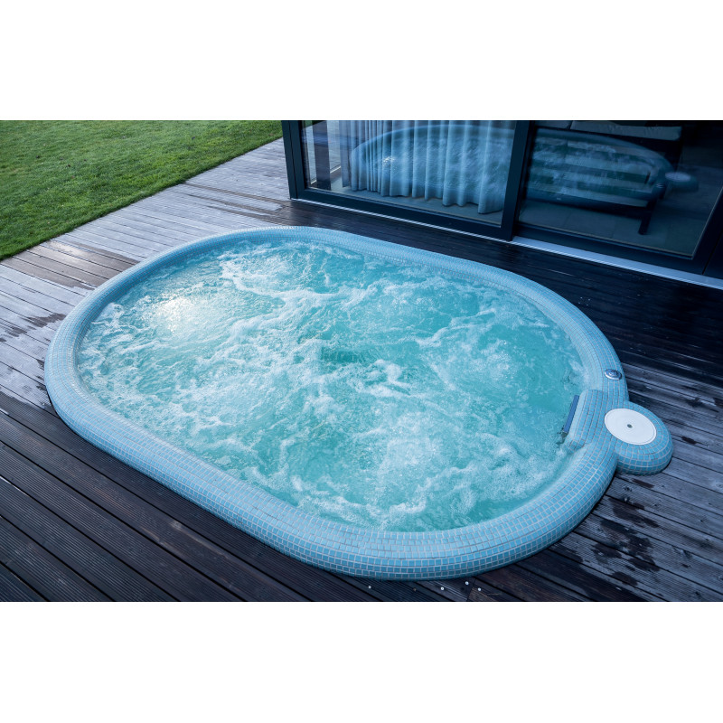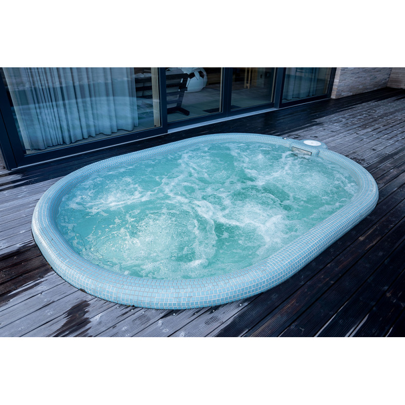 Бассейн оборудован гидромассажными струями воды, подводным светодиодным RGB-освещением и занавеской для предотвращения попадания грязи в воду бассейна.