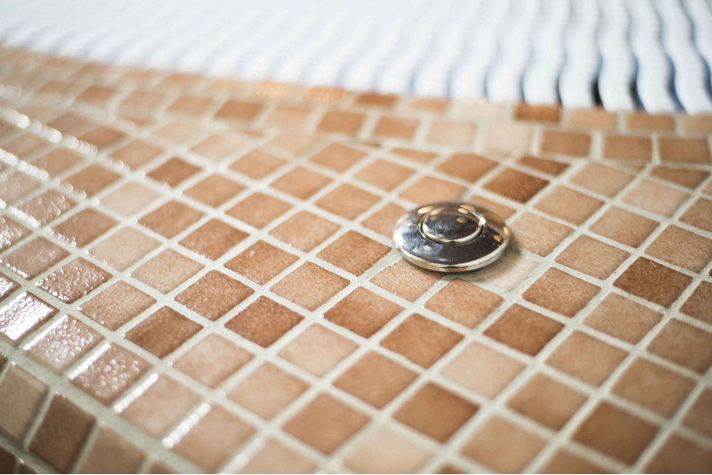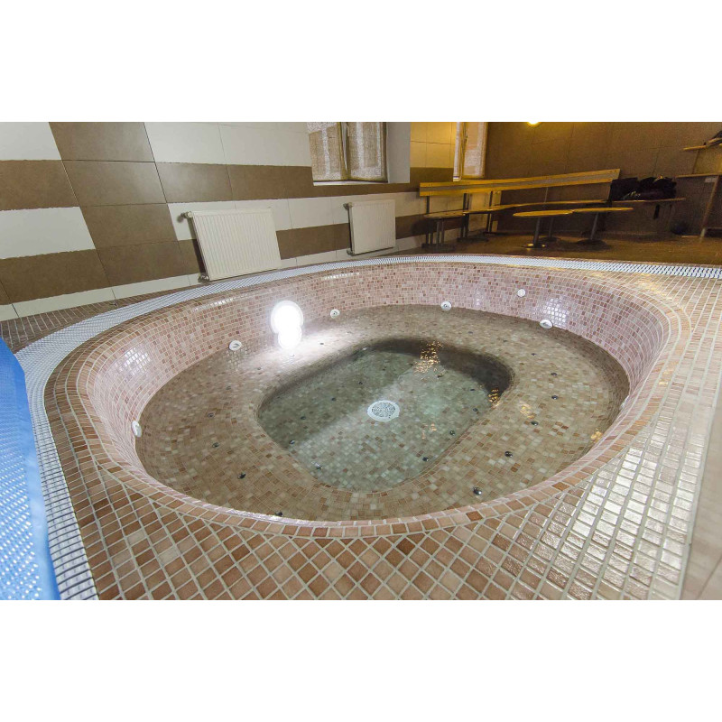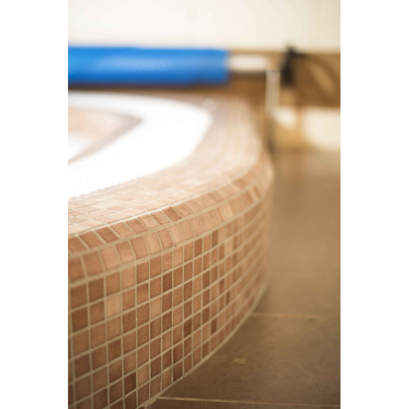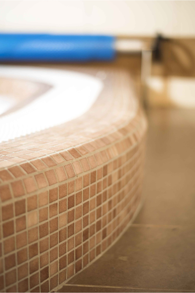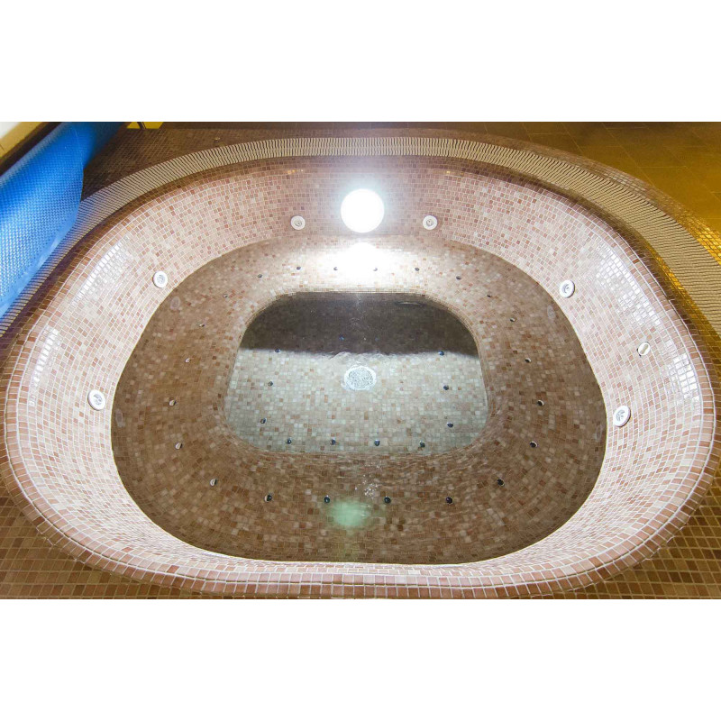- Плитка - бассейн изнутри и снаружи покрыт стеклянной мозаикой нейтрального цвета.