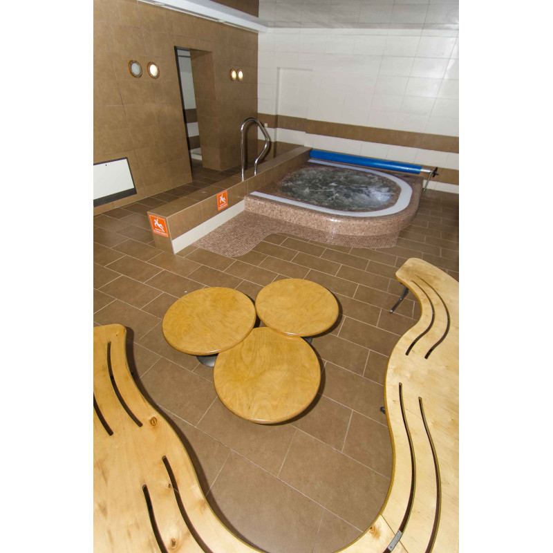 Формы гидромассажной ванны изготавливаются из специального экструдированного полистирола по индивидуальному заказу. В бассейне одновременно могут разместиться несколько человек, так как сидячие места расположены вокруг всего бассейна.