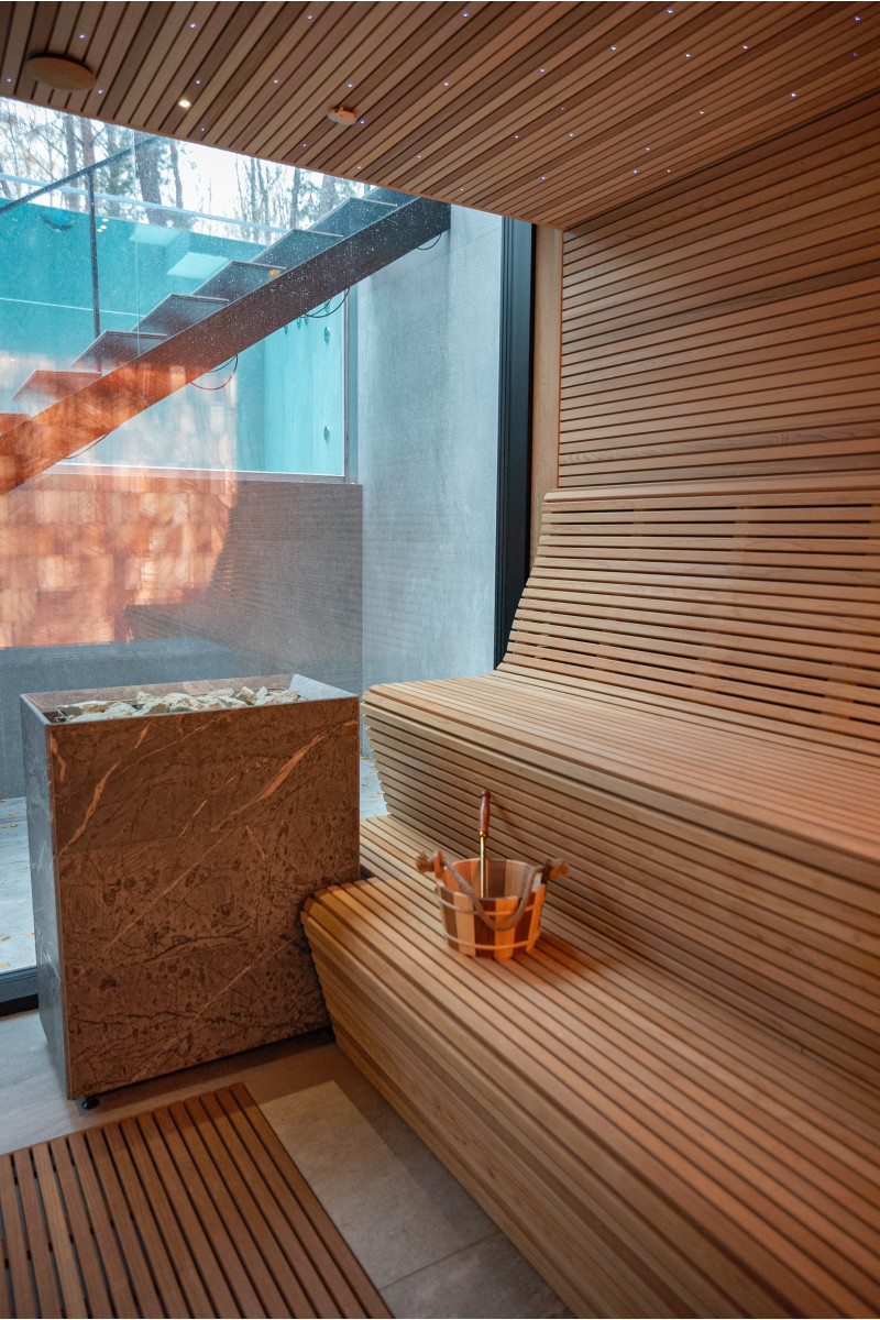 Индивидуальный проект сауны, открытого бассейна, обливного устройства и джакузи