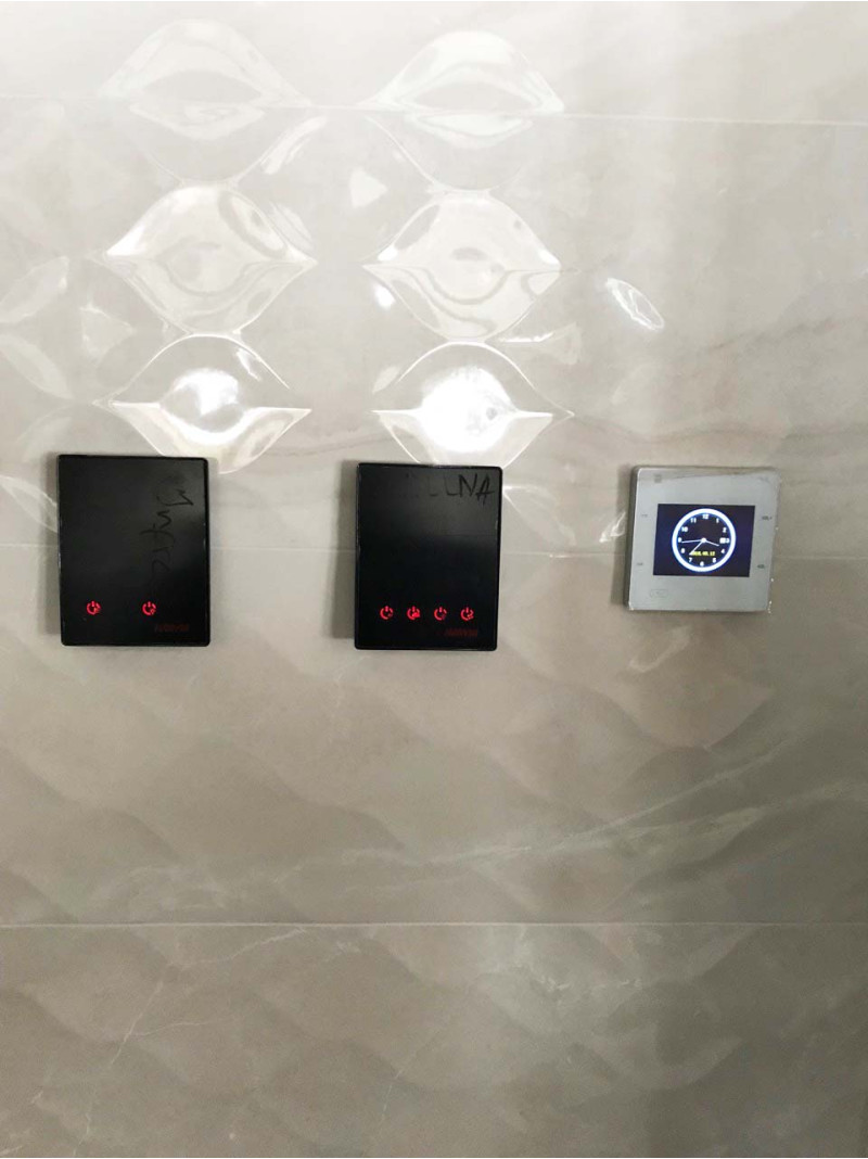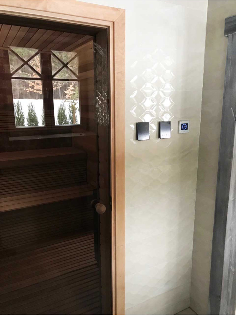 - Две панели управления, установленные снаружи сауны - для управления двумя отдельными режимами. Панель управления Harvia Xenio Combi CX110C и инфракрасная панель управления Harvia CX36I.