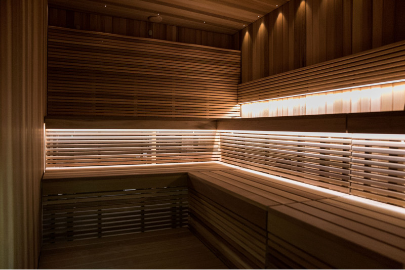 Установлена на французском горнолыжном курорте Куршевель сауна с функцией пара и паровая баня.