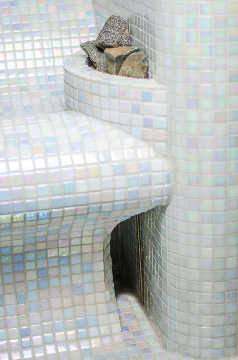 Скамейки, стены и потолок паровой сауны изготавливаются индивидуально из специального экструдированного полистирола. Потолки имеют арочную форму, характерную для любой парилки, поэтому на них не может скапливаться конденсат пара. Сидячие места, изогнутые скамейки удобной формы для приятного отдыха в сауне. Скамейки осушены, чтобы на них не скапливались пот и влага.