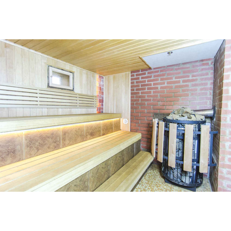 Установлены динамики, позволяющие еще больше расслабиться, слушая музыку и наслаждаясь сауной.