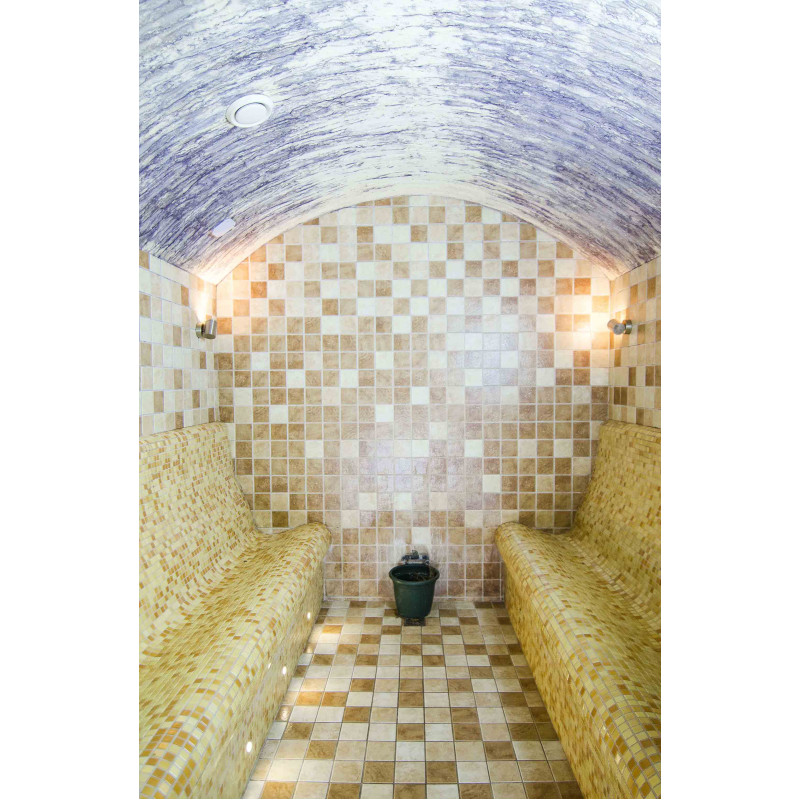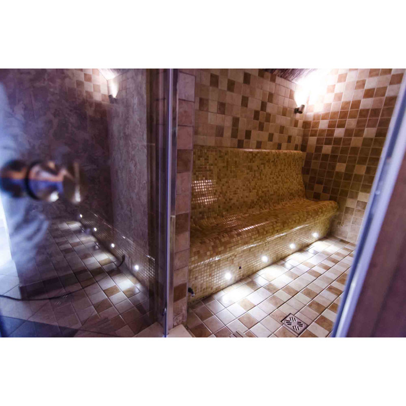 Заменено оборудование - установлен парогенератор Helo HNST, подходящий как для частных, так и для общественных паровых бань. Парогенератор оборудован цифровой панелью управления Т1, которая устанавливается снаружи паровой сауны. Т1 - сенсорная панель управления нового дизайна. На дисплее отображается время, температура и включение / выключение, с настройками времени включения и температуры (время работы 23 часа).