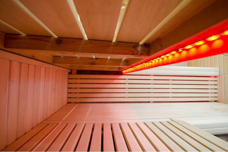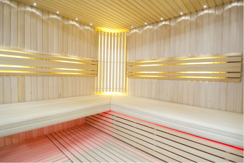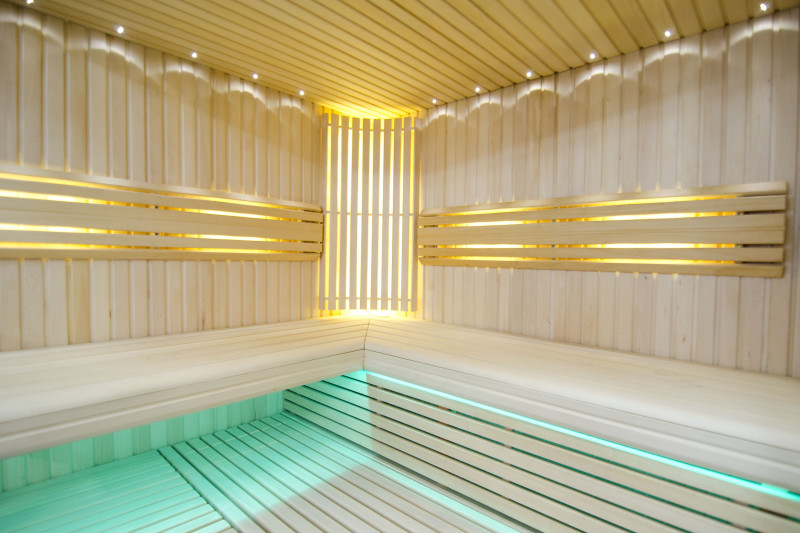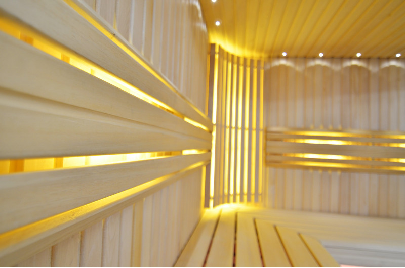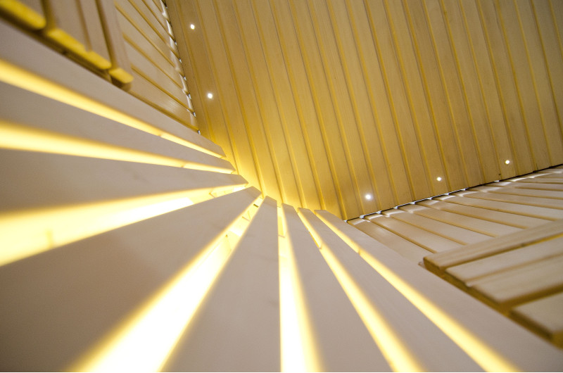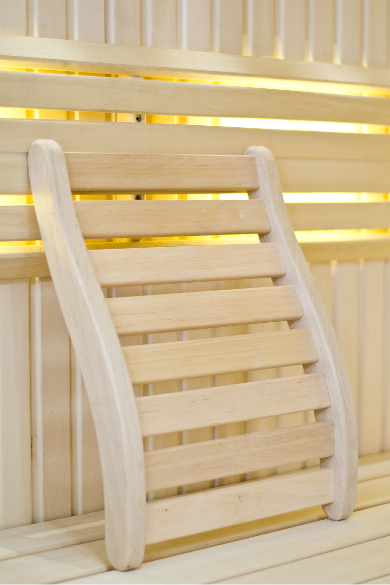Стены выполнены из светлого дерева липы высочайшего качества, а скамейки и спинки - из африканского дерева абачи, которое не сильно нагревается, поэтому сидеть на нем особенно приятно и комфортно.