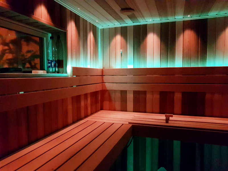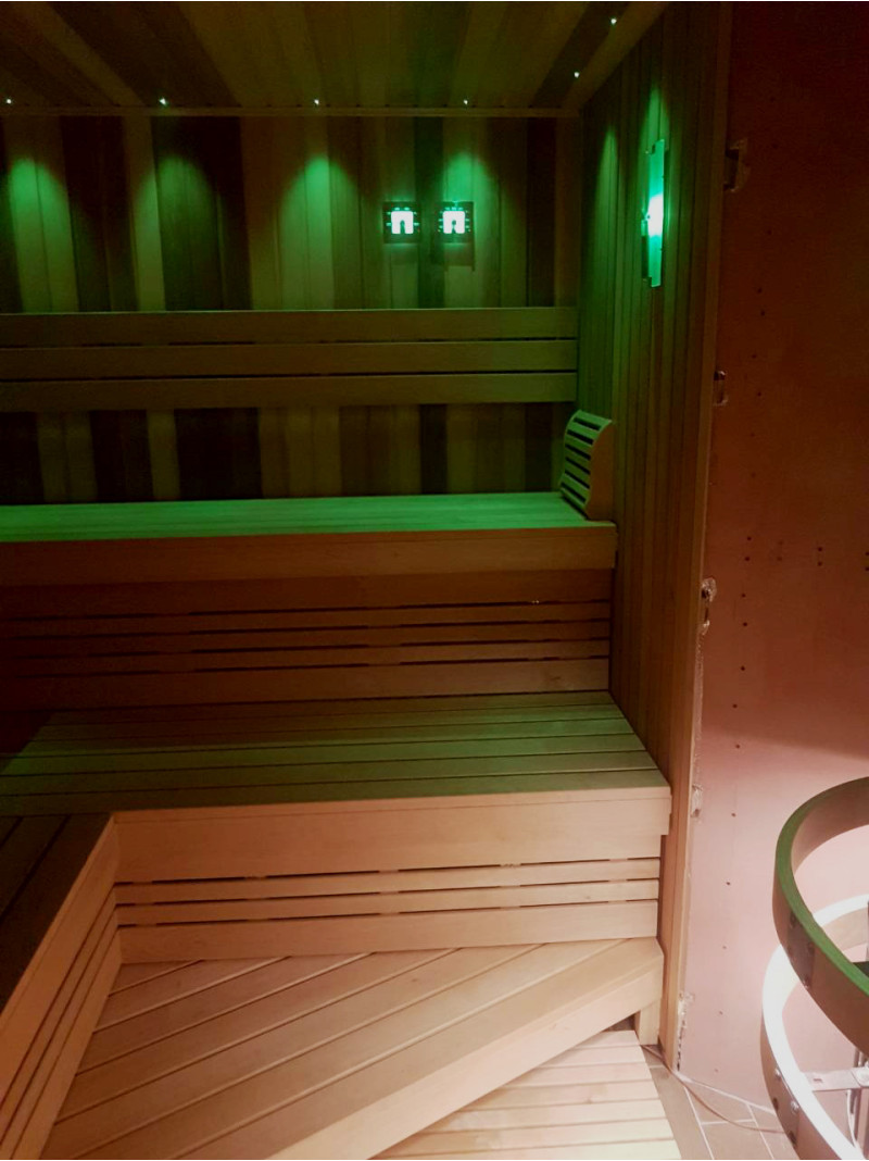 Для стильного освещения сауны: оптоволоконный проектор Cariitti, лампы под спинками и скамейками, а также термометры с подсветкой. Светильники могут менять цвет - в зависимости от ваших пожеланий и настроения.
