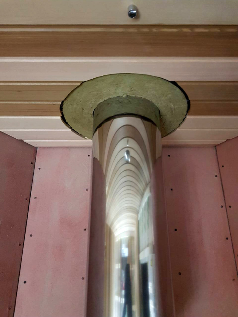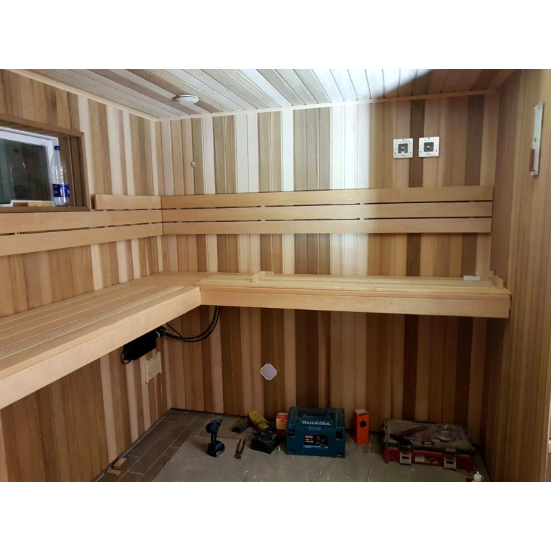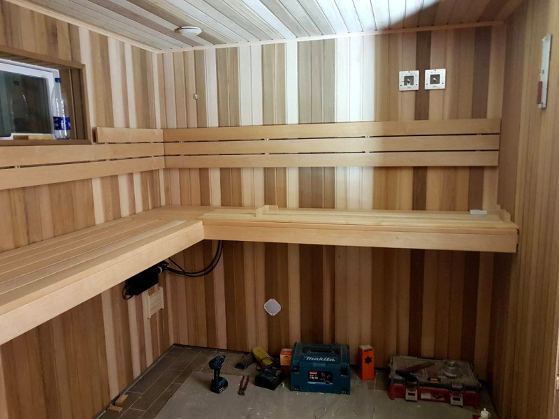 Из-за высокой прочности сауны были выбраны древесина ольхи и канадского кедра. Древесина кедра поглощает наименьшее количество тепла, что делает сауну более комфортной.