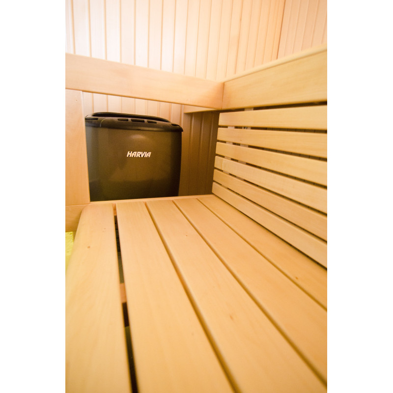 Освещение - лампы Harvia, установленные под деревянной спинкой, создают часть расслабляющего эффекта сауны.