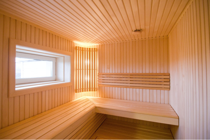В сауне также есть окно, которое дает комнате больше пространства и света.