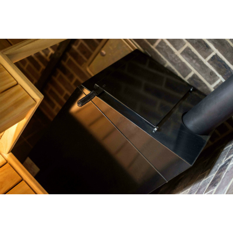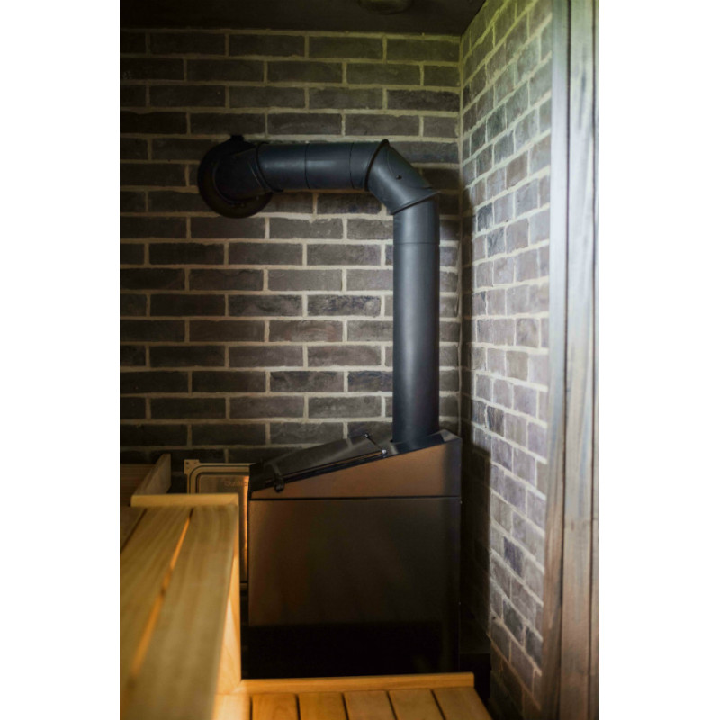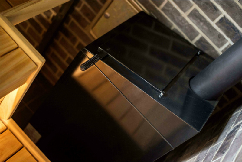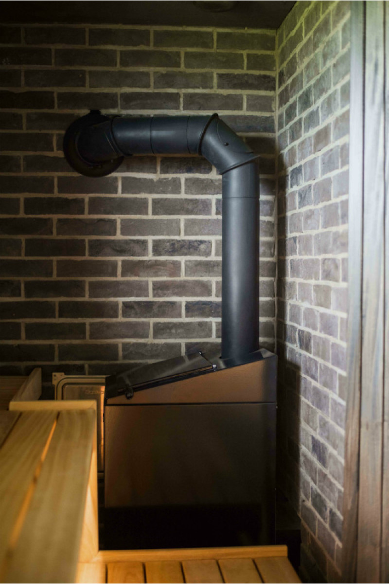 В качестве каменки для сауны на дровах выбрана печь Narvi Steam Master Tunnel WT. Это очень качественная теплоаккумулирующая каменка для сауны. Этот обогреватель вмещает до 100 кг камней. Когда вы открываете верхнюю крышку каменки и поливаете горячие камни водой, вы получаете много приятного пара.