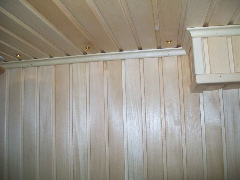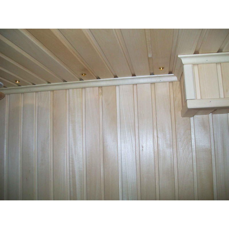 Стены покрыты специальным лаком для сауны на водной основе, скамейки пропитаны парафиновым маслом. Лак защищает древесину от трения, нагрева, не имеет неприятного запаха. Древесину с парафиновым покрытием легче чистить и поддерживать в хорошем состоянии.