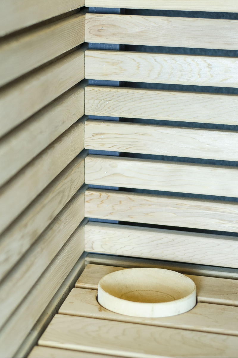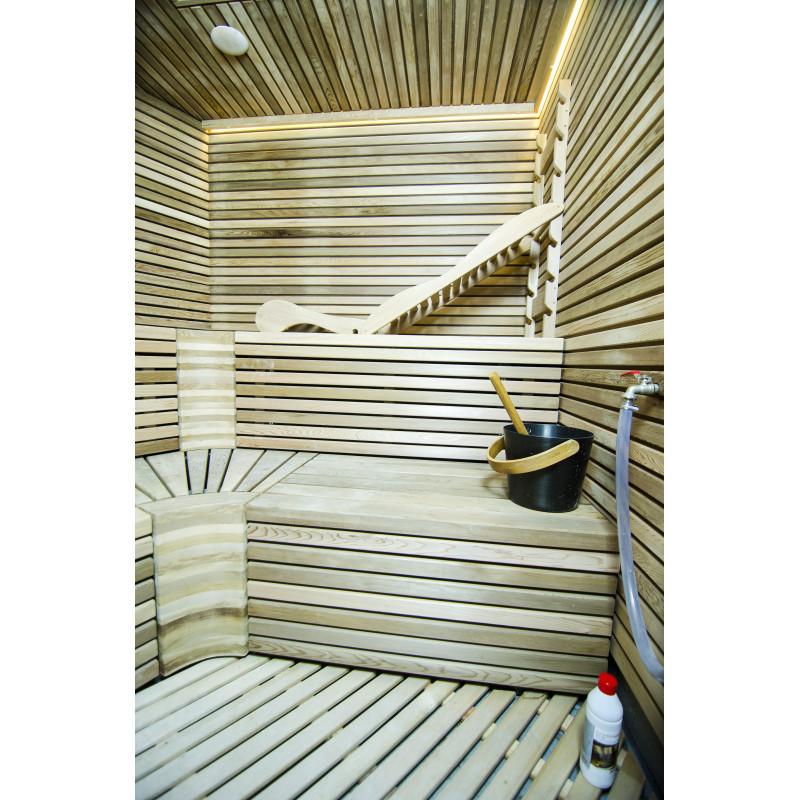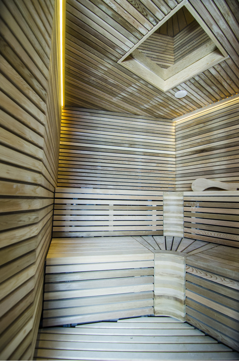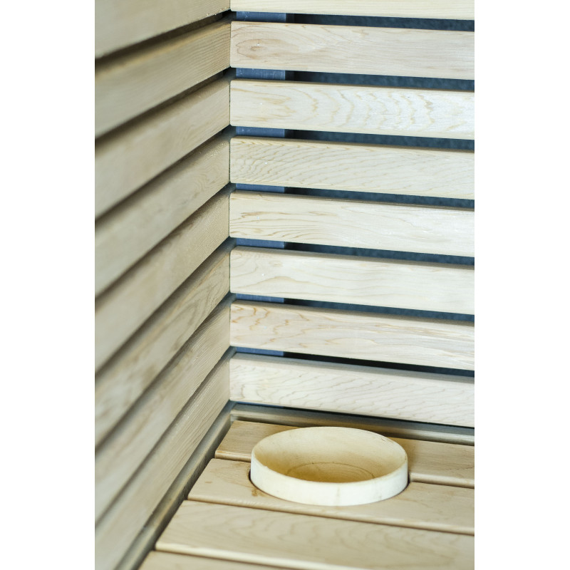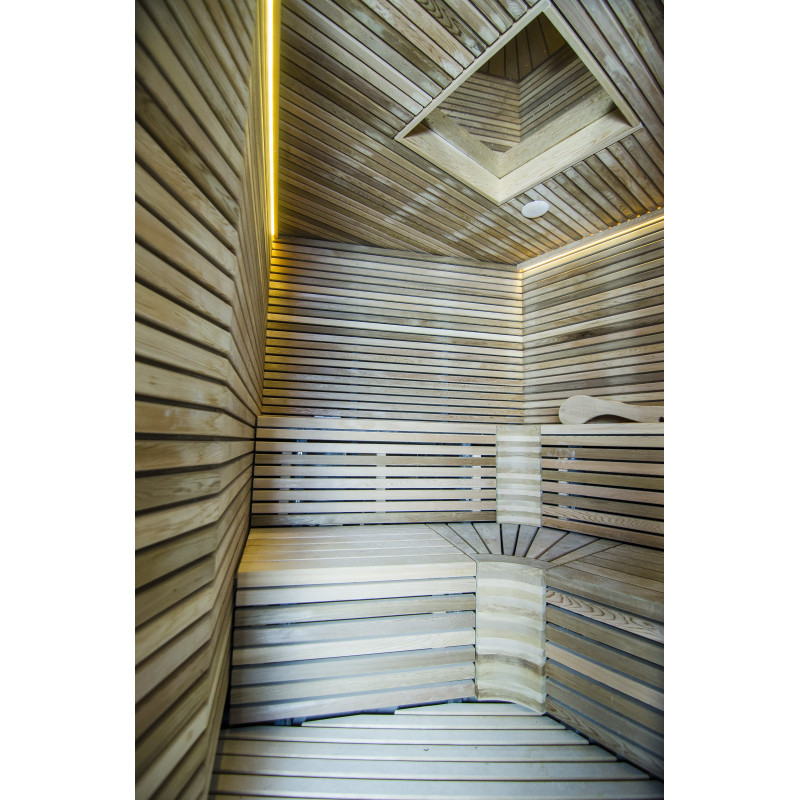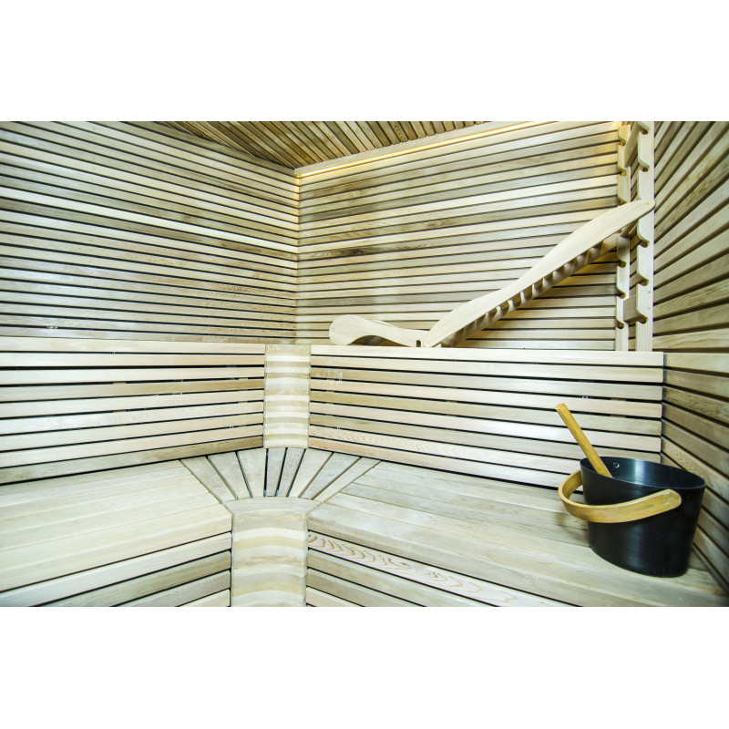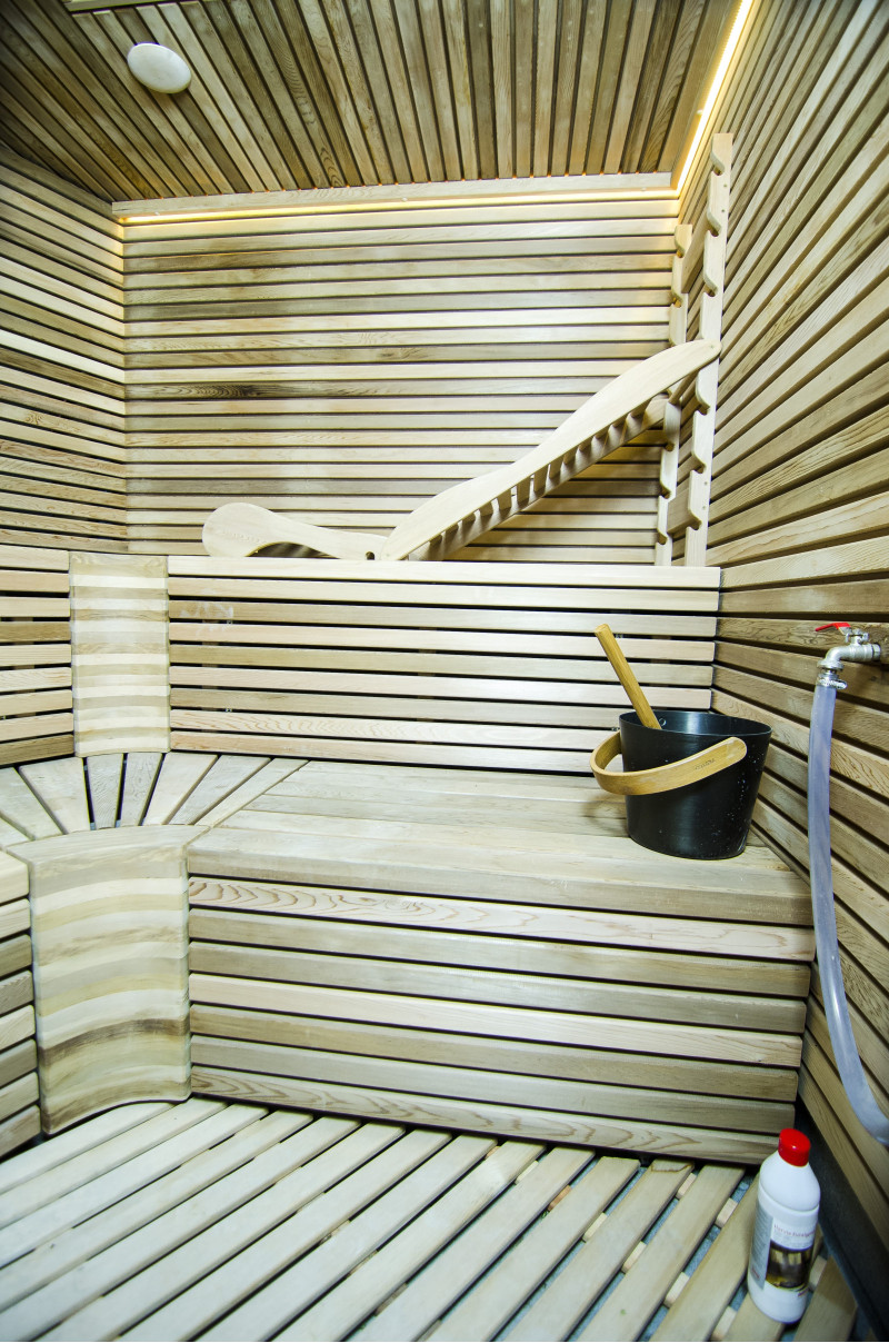 Стены и скамейки сауны выполнены из кедрового дерева высочайшего качества.