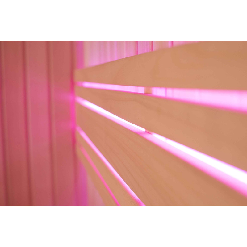 Цветное светодиодное освещение под лежаками и спинками регулируется на панели. Вы можете изменить цветовую гамму и интенсивность вручную или автоматически.