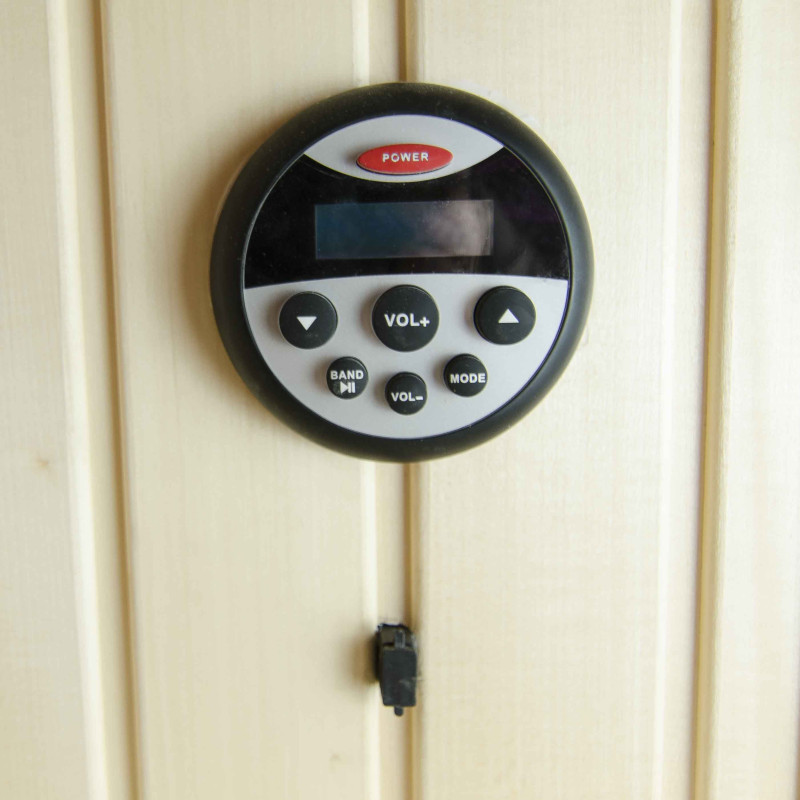 В Мелнраге реализован проект современной сауны для частного пользования. В ванной комнате был уголок для удовольствий семейной сауны. Большие окна витрины сауны открывают вид на природу через окно ванной комнаты, обеспечивая постоянный источник света и оптически увеличивая пространство небольшой сауны. Помимо прекрасного вида, удовольствие от сауны усиливается звуком - встроенным музыкальным оборудованием. Медиаплеер специально адаптирован для использования в горячей влажной сауне. В нем есть USB-соединение, Bluetooth, радио, ЖК-экран, резиновые кнопки управления. Акустические системы также устойчивы к воздействию влаги, коррозии и температуры в сауне.